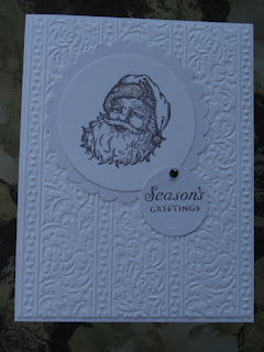 I chose THIS CARD to case because I love the simplicity of her white Christmas card. It didn't take long to create something similar to LeAnne's card. I changed the embossing folder, the stamps, and the bling (as well as it's placement). I also added some bling of my own with my Sakura clear glitter pen.