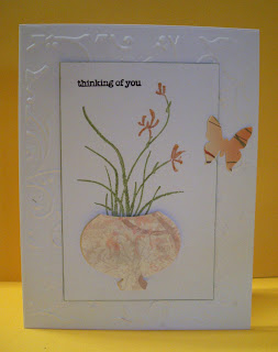 I made a couple of cards since Monday and another one is in the works, but I am not happy with them at all. They are both severely lacking. I guess "creative desire" does not necessarily equal "creative mojo!" One may be fixable (I have some ideas that might work) but the other had to go out today so "it is what it is."